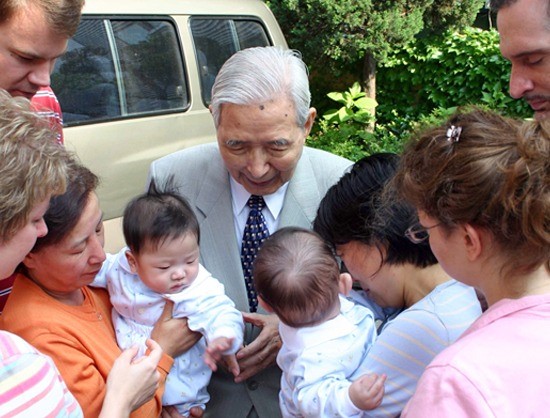 Photo shows ESWS Founder Kim, Duk Hwang holding prayer for children going to their adoptive families